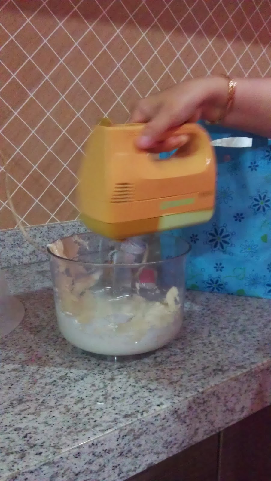 - Pukul keju, gula dan yogurt sehingga gebu.